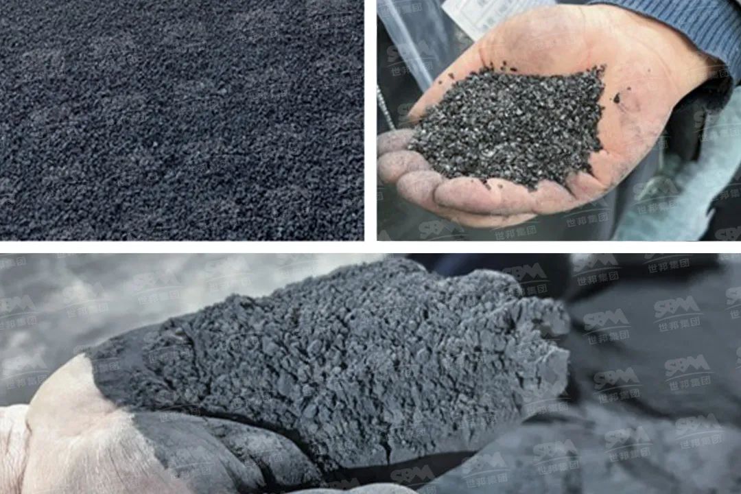 符合細度要求的細粉隨同氣流出磨再進入收塵器內進行分離收集,成品粉輸送至壓球機,壓球后炭化,再由破碎機破碎成炭塊噸包轉運。